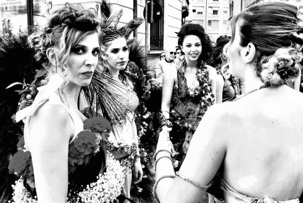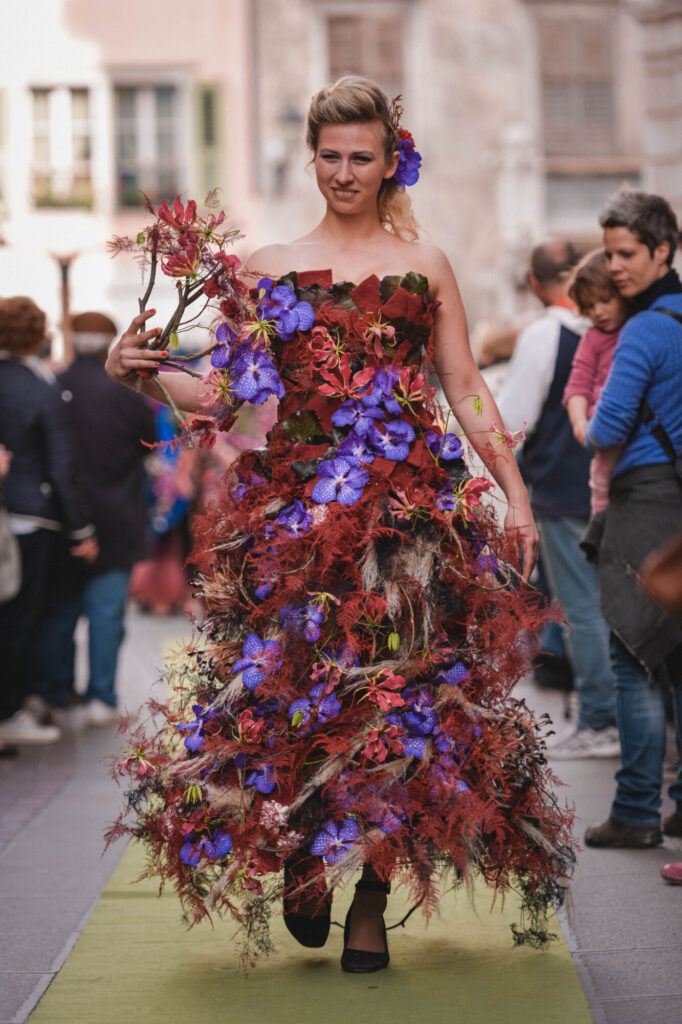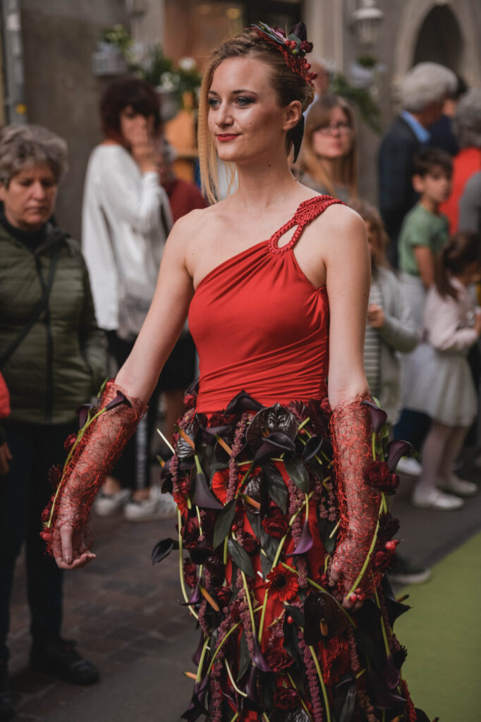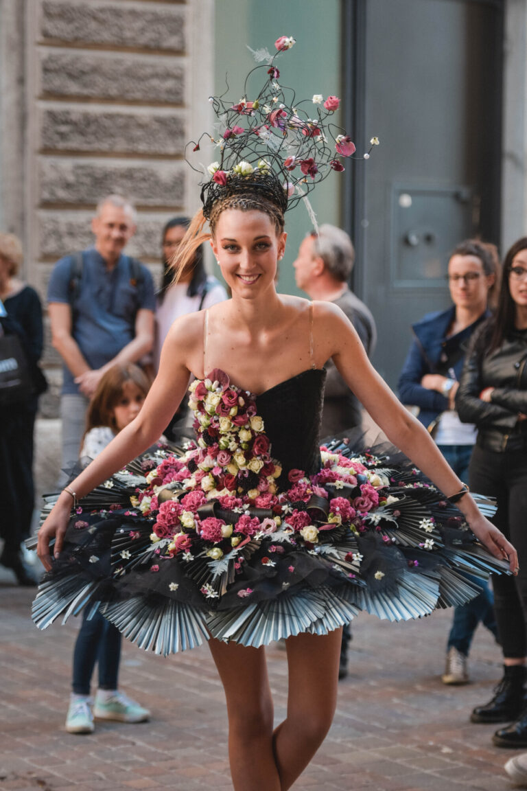 Fornitura personale per concorso dedicato a fioristi provenienti da tutta Italia che si sono esibiti nella creazione di abiti e accessori floreali ispirati alla danza.